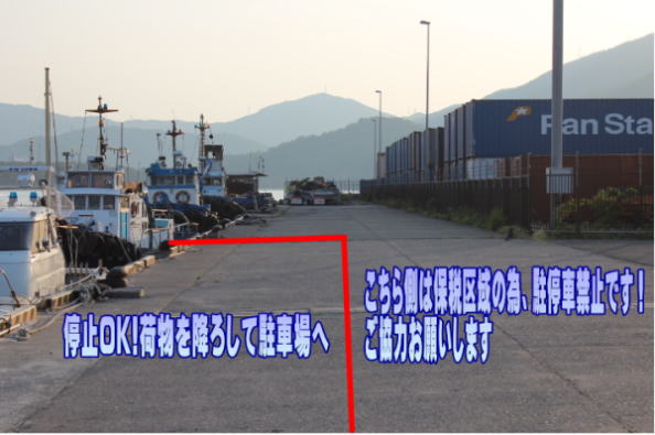 右側はトレーラーが通行してますので作業の妨げにならないよう宜しくお願いします